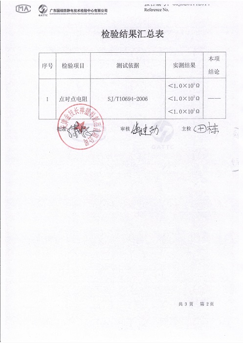 检测依据:SJ/T 10694-2006 电子产品制造与应用系统防静电检测通用规范之规定要求.