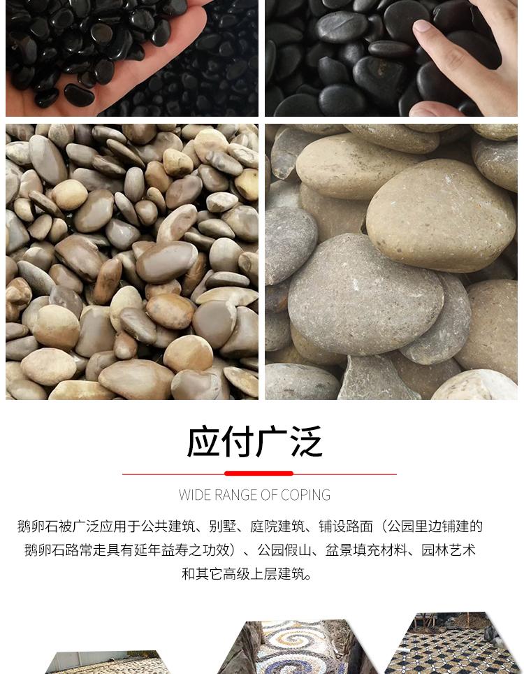 用途 | 一般用于公园造景,铺路,绿化,变压器鹅卵石用料等用料 | 类型 | 鹅卵石 | 品牌 | 秀龙矿业 |