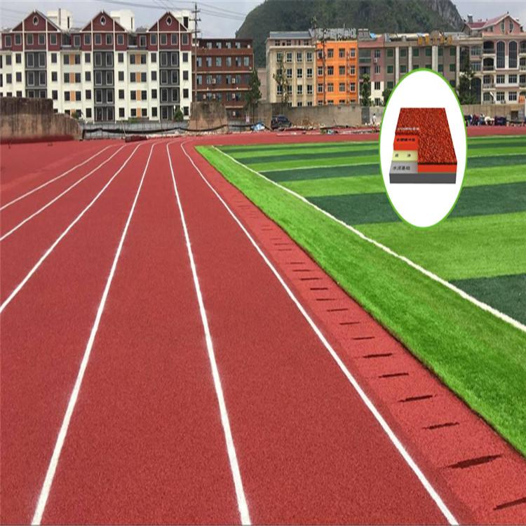 塑胶跑道又称全天候田径运动跑道,它由聚氨酯预聚体、混合聚醚、废轮胎橡胶、EPDM橡胶粒或