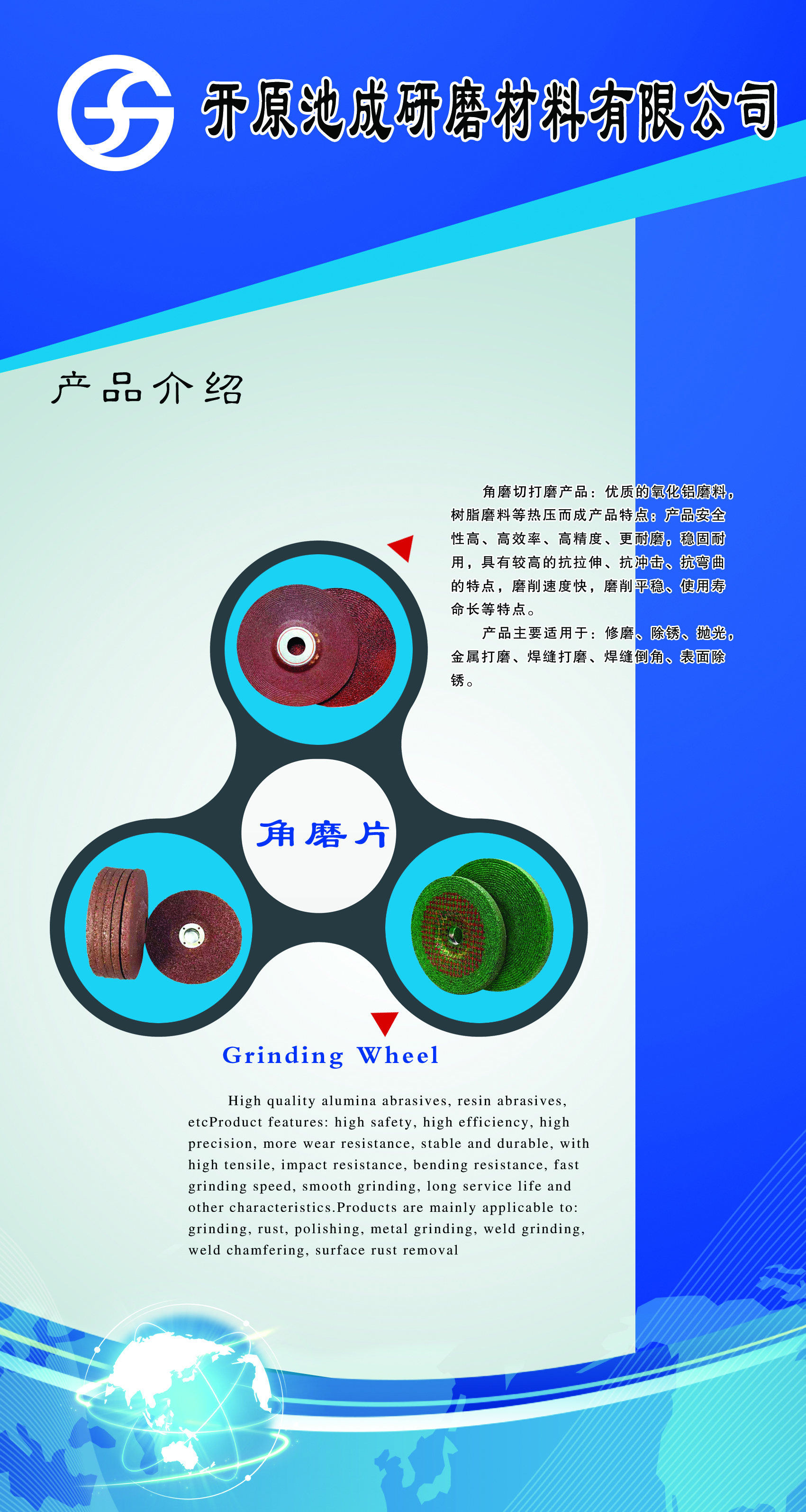 角磨片打磨产品:优质的氧化铝磨料,树脂,辅料等热压而成。产品特点:安全性能高、高效率、高精度、更耐磨,稳固耐用,具有较高的抗拉伸、抗冲击、抗弯曲等特点,磨削速度块,磨削平稳、使用寿命厂等特点。