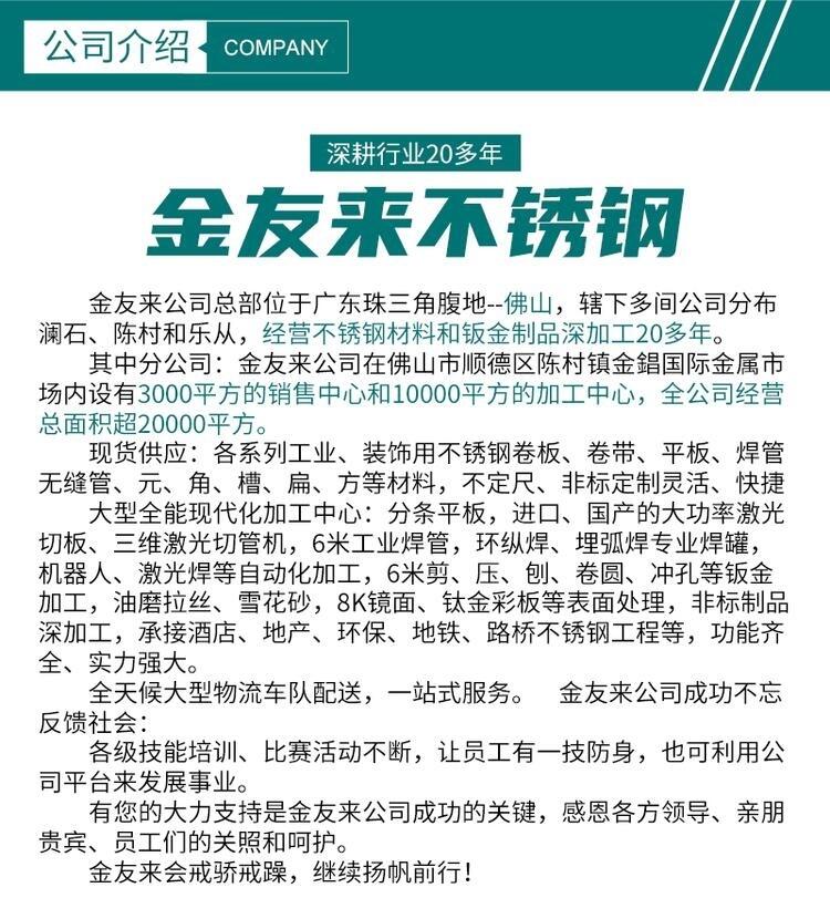 佛山市金友来不锈钢有限公司 智能客服智能客服在线解答,若涉及资金打款事宜,务必与厂家进行电话确认。
