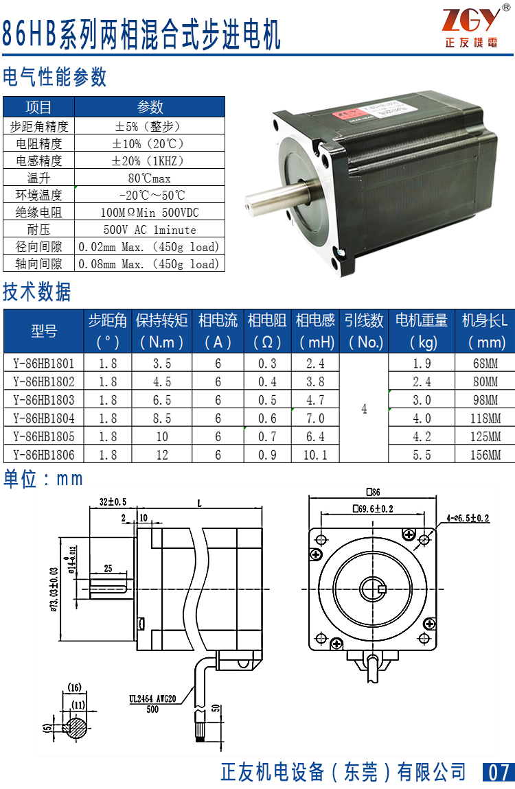 正友机电ZGY两相86HB混合式步进电机/马达4.5/8.5/12NM驱动器套装