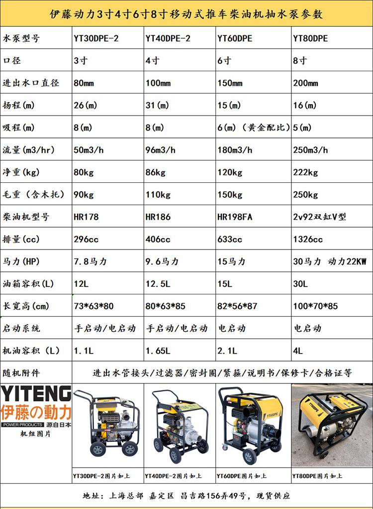 防汛用伊藤动力2寸3寸4寸6寸8寸柴油机抽水泵移动式电启动带轮子