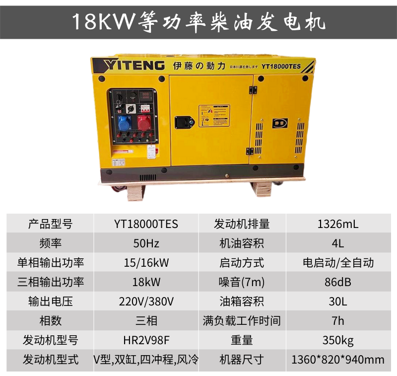 伊藤动力15/18KW静音柴油发电机组YT18000TES 双电压等功率电启动 电压 | 380V | ||