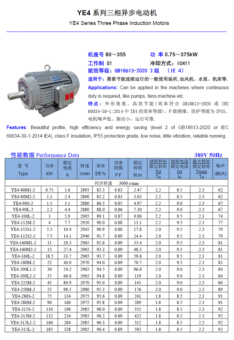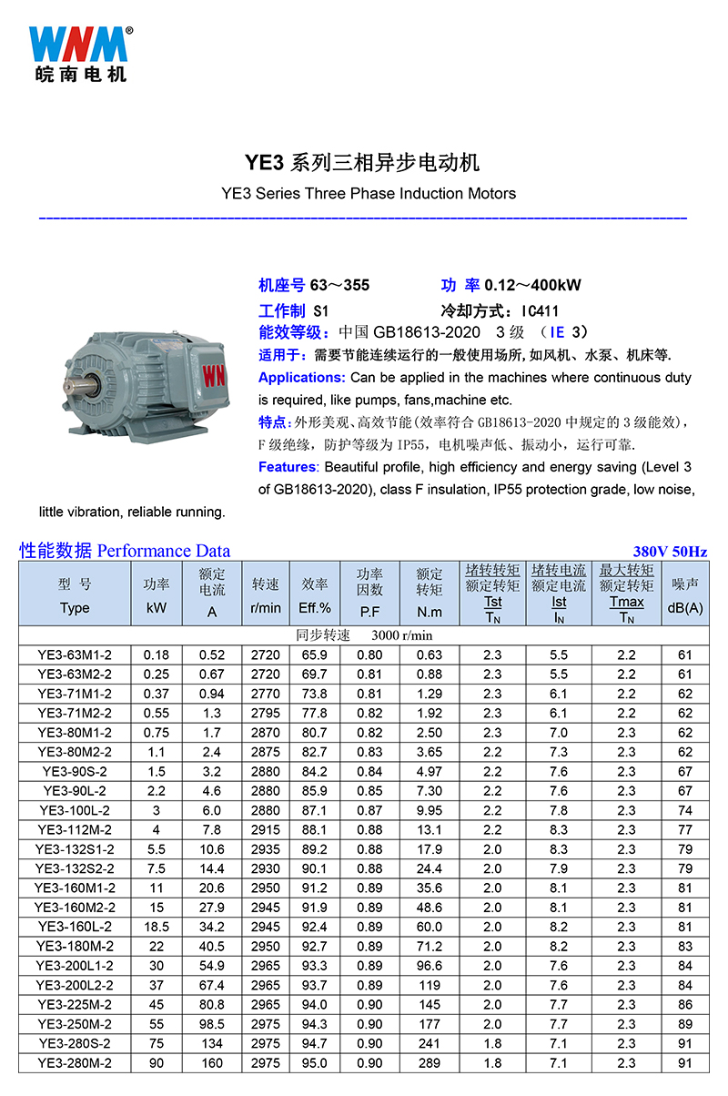 皖南电机 YE3/YE4系列超高效三相异步电动机0.12kW~375kW 是否进口 | 否 | ||