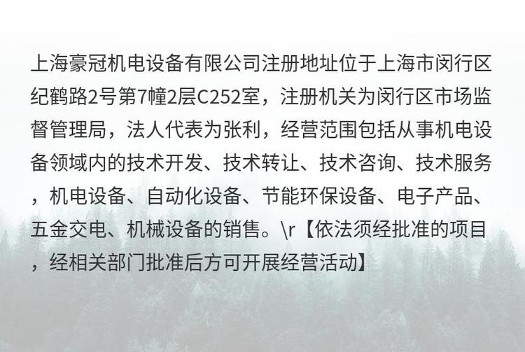 商铺名称:上海豪冠机电设备有限公司