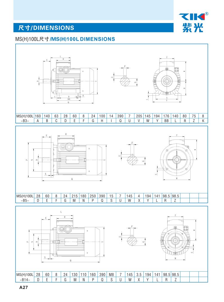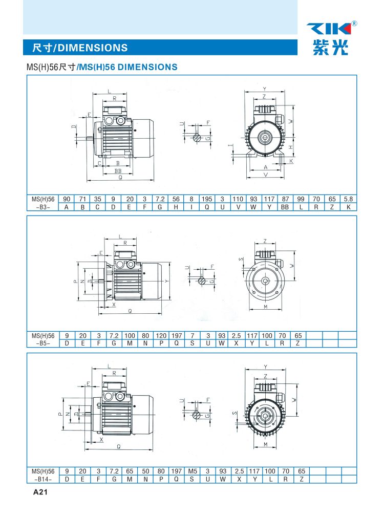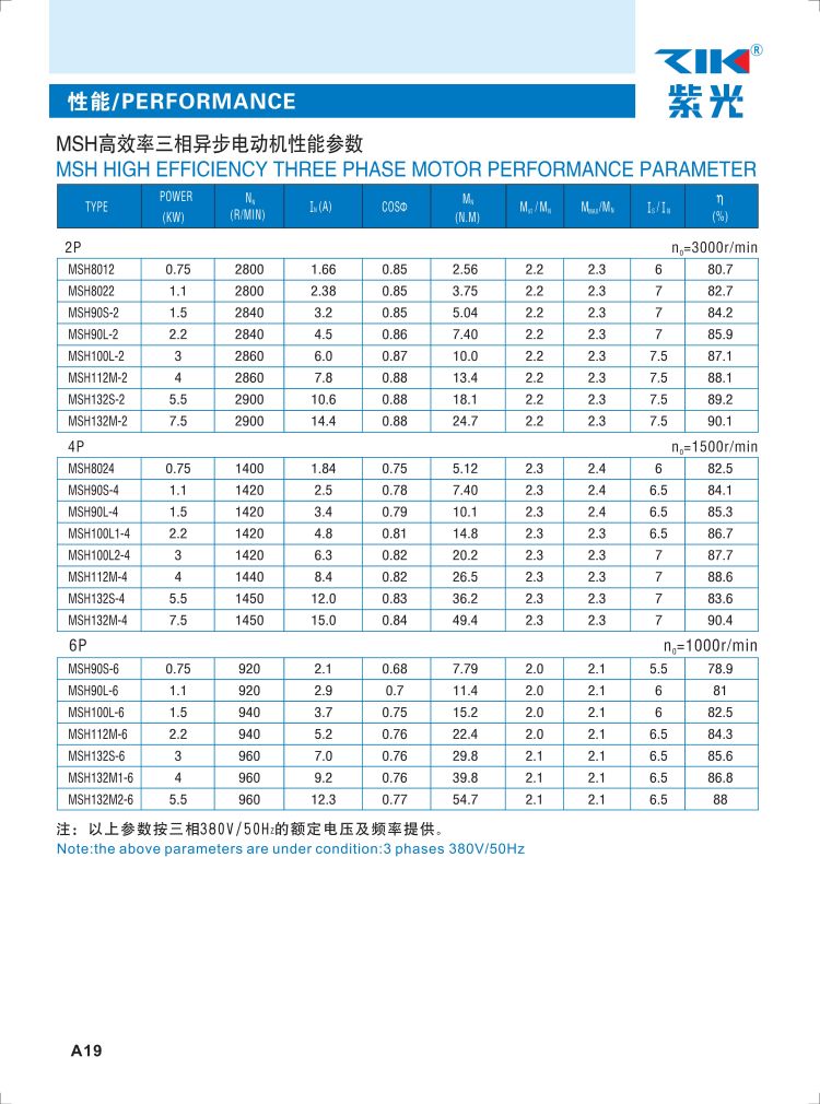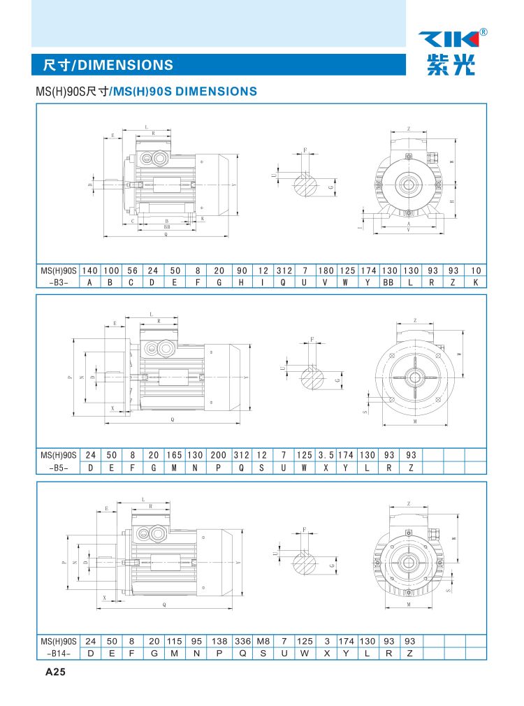 中研紫光电机MS6314/6324/7124/7114/7112 0.37KW三相异步电动机 功率 | 0.37KWW | ||