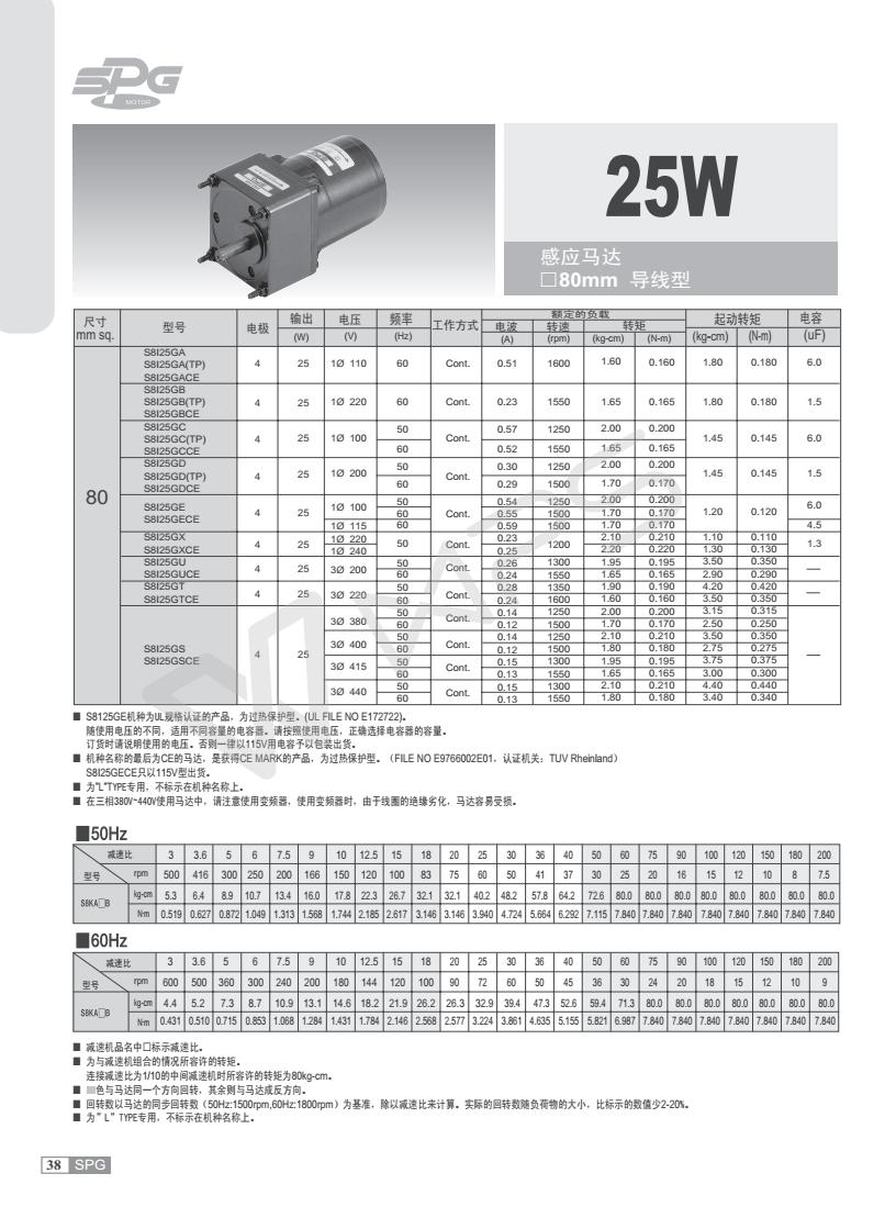S8I25GSCE SPG电机 SPG马达 三相380V 50HZ SPG代理商