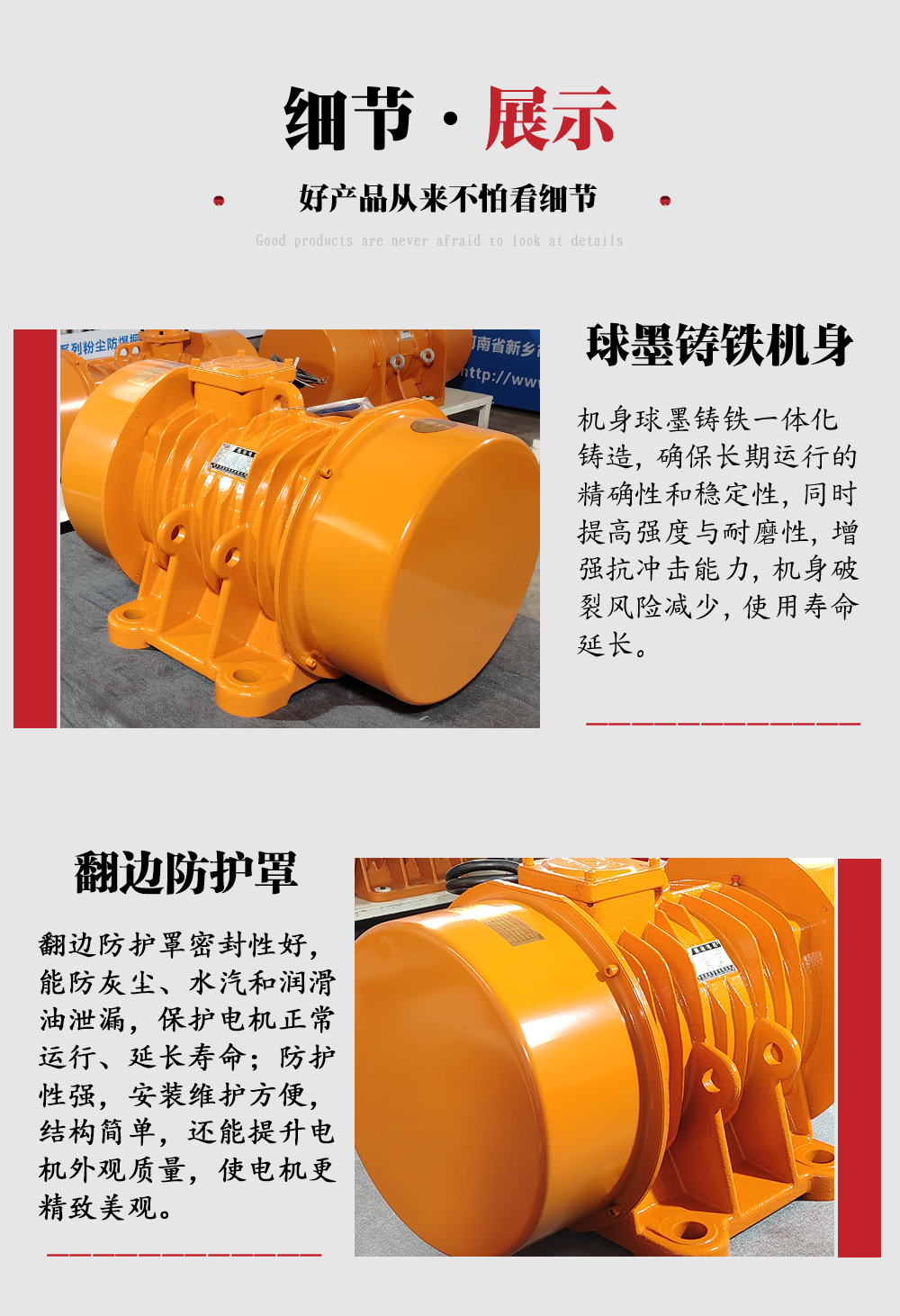 YZH-100-6三相异步振动电机是一种专门设计用于给料设备的振动电机,它通过产生振动来实现物料的输送和给料。这种电机的特点包括设计科学、结构简单、低噪音、使用寿命长、密封设计、激振力调节方便、多机组合使用、广泛的应用范围、维护简便、高能效和环保、安装便捷以及质量保证等。