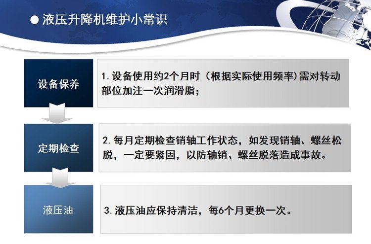??导轨式升降货梯是率的送货平台主要用各种工作层间货物上下运送,宏耀升降机械将竭尽全力为你打量身打造立体车库和地下车库到二层以上高楼间、无法开挖地坑场所顶层高度不能到达要求的场合等比较难解决的狭小空间,,产品液压系统设置防坠、上下层门互动连锁,各楼层和升降台工作台面均可设置操作按钮、实现多点控制。产品结构坚固,承载量大,升降平稳,安装维护简单方便,是经济实用的低楼层间替代电梯的理想货物输送设备。?根据升降台的安装环境和使用要求,选择不同的可选配置,可取得更好的使用效果,高度在150-300mm,并且无须上部吊点。形式多样化(单柱、双柱、四柱),完全是按着客户的实际场地空间量身定做。设备运行平稳,操作简单可靠,导轨式升降货梯是一种非剪叉式升降平台。适用于二三层工业厂房、餐有液压、电气多种保护,货物传输经济便捷。