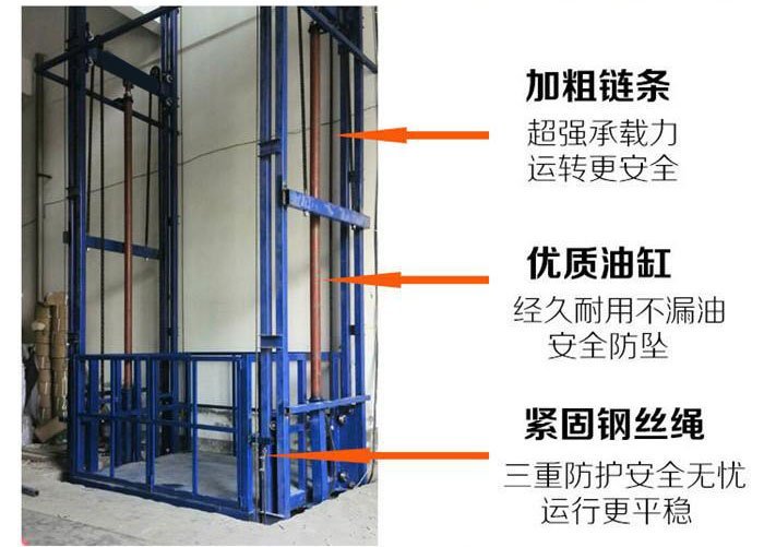 导轨式升降货梯是一款非标定制型产品,根据客户的实际场地空间来量身定制,可以满足任何场地空间的需要,广泛应用于工矿企业代替电梯提升货物,具有结构简单、载重量大、使用寿命长、维护方便、实用等特点,尤其适用于带井道地下无法挖地基的场所。