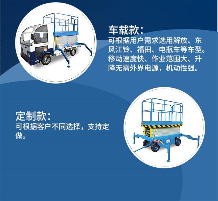 1、移动式升降机全部采用喷塑处理,颜色鲜亮,不褪色。