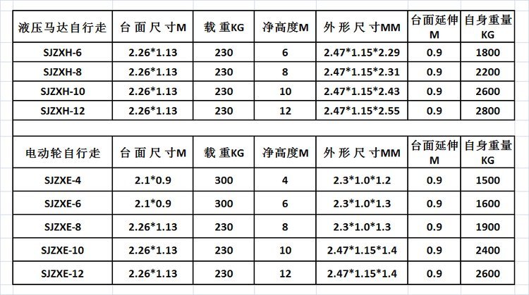 全自行升降机是用途广泛的高空作业设备。它的剪叉机械结构,使升降台起升有较高的稳定性,宽大的作业平台和较高的承载能力,cm03使高空作业范围更大、并适合多人同时作业。升降动力分为220V或380V电源,柴油机,或电瓶动力源,特殊环境也可采用防爆泵站及防爆电器。 升高4——12米,载重0.3吨。采用意大利和国产液压泵站,台面使用防滑绝缘扣板,具有防滑,绝缘、安全,请放心使用。它使高空作业效率更高,安全更保障。