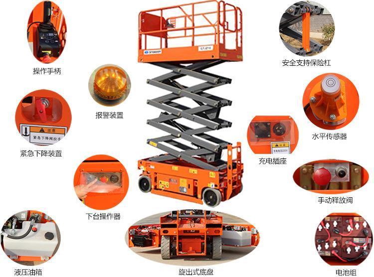 1、设有升降台超载 液压安全保护系统的 液压剪叉式升降台,升降台主结构采用高强度锰钢矩形管制作,强度高,坚固耐用。