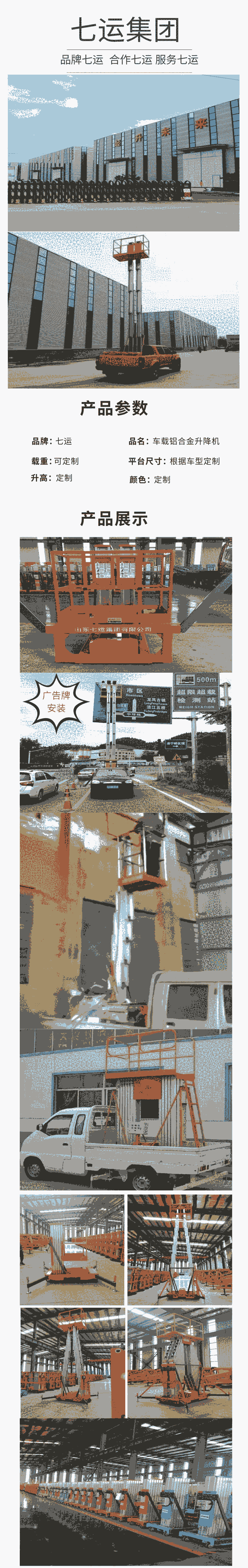 车载式液压升降机是服务于各行业高空作业、设备安装、检修等可移动性高空作业的产品。车载式高空作业平台是由升降台和汽车配套改装而成的。它接取汽车引擎动力,实现升降台的升降功能。