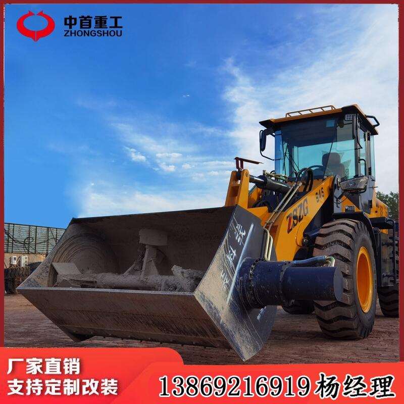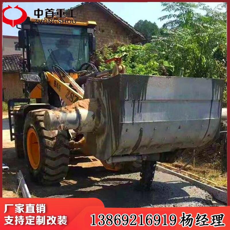 装载机搅拌斗铲车搅拌机混凝土搅拌机装载机铲斗带搅拌功能发明介绍本发明利用成熟的装载机生产技术混凝土搅拌机生产技术,把式混凝土搅拌机经过改装安装在装载机的铲斗位置,利用装载机的液压传动装置驱动搅拌机工作,既可发挥装载机方便的移动性能和自行上料、卸料的优势,又可以利用凝土搅拌机的拌合功能,一台机械即可实现上料、拌合、转场、卸料的多重功能。搅拌斗装载机既可发挥装载机方便的移动性能和自行上料、卸料的优势,混凝土搅拌机的拌合功能,一台机械即可实现上料、拌合、转场、卸料的多重功能.新农村建设工程特惠新型搅拌斗装载机具有不用电源,及上料、搅拌、运输、卸料于一体的功能,而且不搅拌铲斗还可以换其他多种属具,实现真正的一机多用,是真正的多功能装载机。