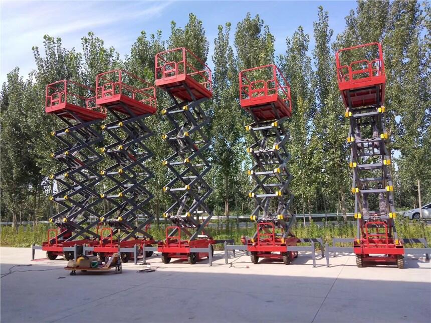 移动式升降机为四轮移动行走,垂直升降,其剪叉主结构采用上海宝钢锰钢矩形管制作,工作台面宽大,结构