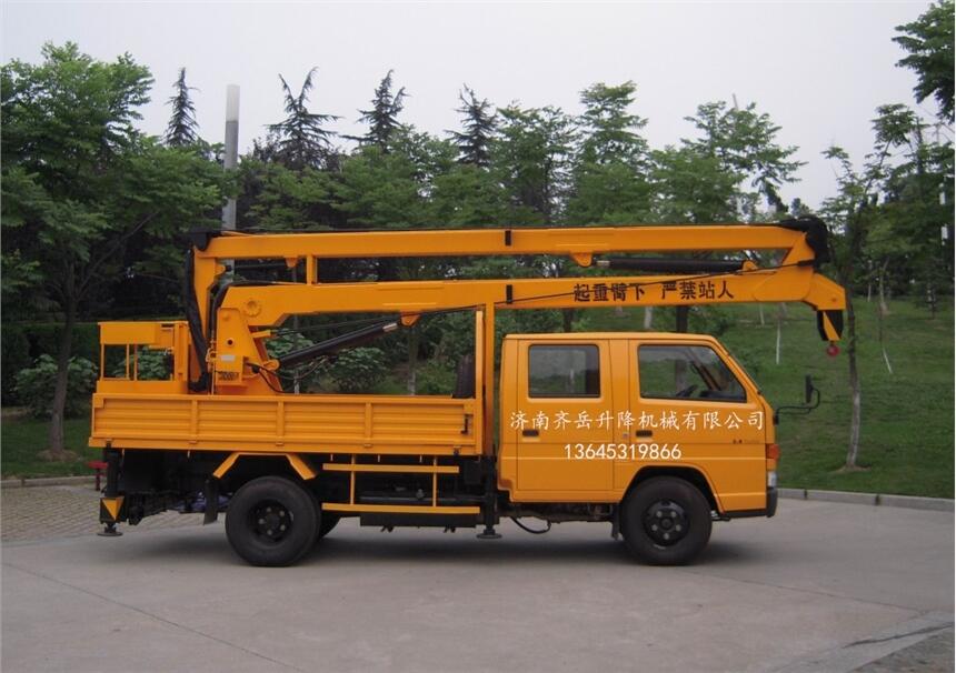 车载折臂式升降机:把曲臂式升降机安装在汽车上,利用汽车动力驱动升降。适合远路程的野外高空作业。