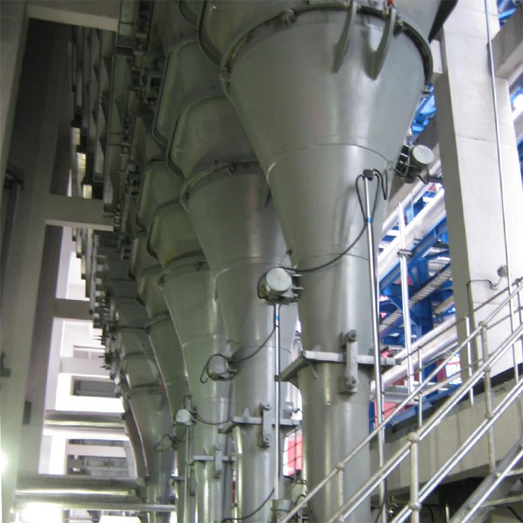 分级疏导防堵型物料仓采用悬挂振动分级疏通的防堵理念,从整体上改变了传统物料仓的结构形式。通过悬挂方式使物料仓成为活动仓体,使物料进行有效的排空。清除仓壁的结团。采用分层振动方式, 使物料下料受控。有效的杜绝段煤的状况,同时采用上方清仓振打装置,有效的消除上方固定斗体结团、蓬料的现象,从根本上解决物料仓下料不顺畅、堵塞的问题。