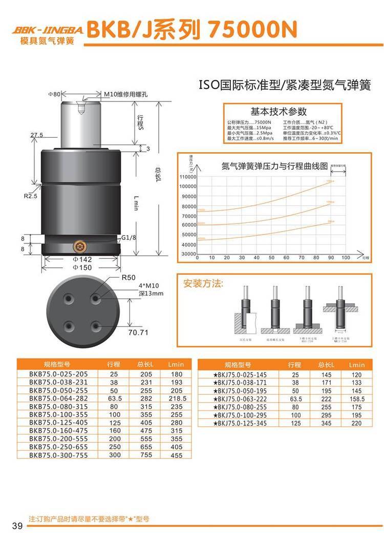 BKB-75000N-氮气弹簧 ISO标准型 紧凑型氮气弹簧 模具氮气弹簧生产厂家