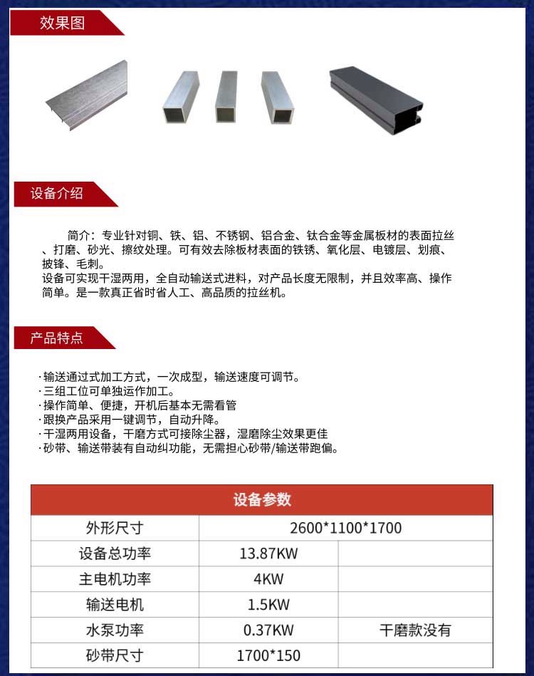直管砂光机方管拉丝机多工位直进式加工,效率高品质稳定