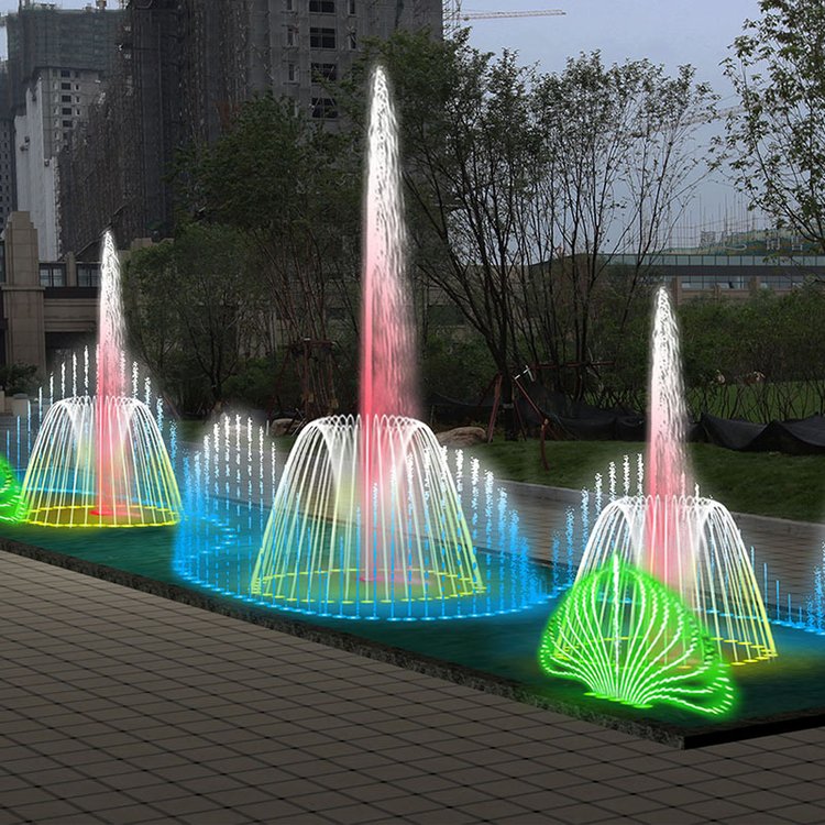 二是完全依靠喷泉设备人工造景。这类水景在建筑领域广泛应用,发展速度很快,种类繁多,有音乐喷泉、程控喷泉、摆动喷泉、跑动喷泉、光亮喷泉、游乐趣味喷泉如呐喊喷泉、超高喷泉、激光水幕电影等。"