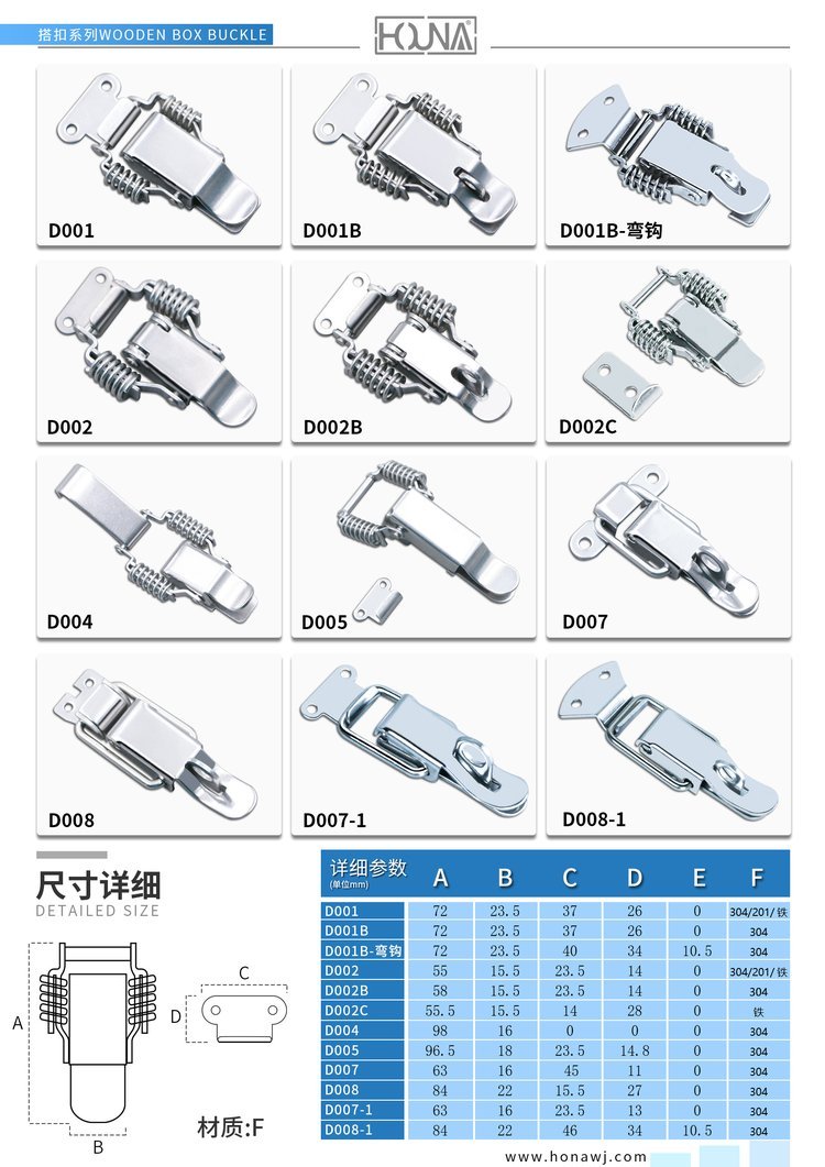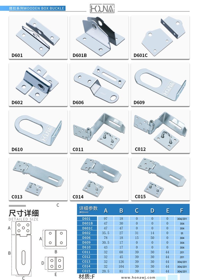 苏州华纳机电有限公司作为一家经营多年的箱类配件厂家,是国内一家研发与生产箱类五金配件公司,主要生产蝴蝶锁扣、搭扣、拉手、包角、木箱整套配件等等,箱类五金配件为主体的品牌。专注为客户提供箱类解决方案;不断提供配套产品。品牌有五大产品——蝴蝶箱扣、搭扣、包角、合页以及拉手。