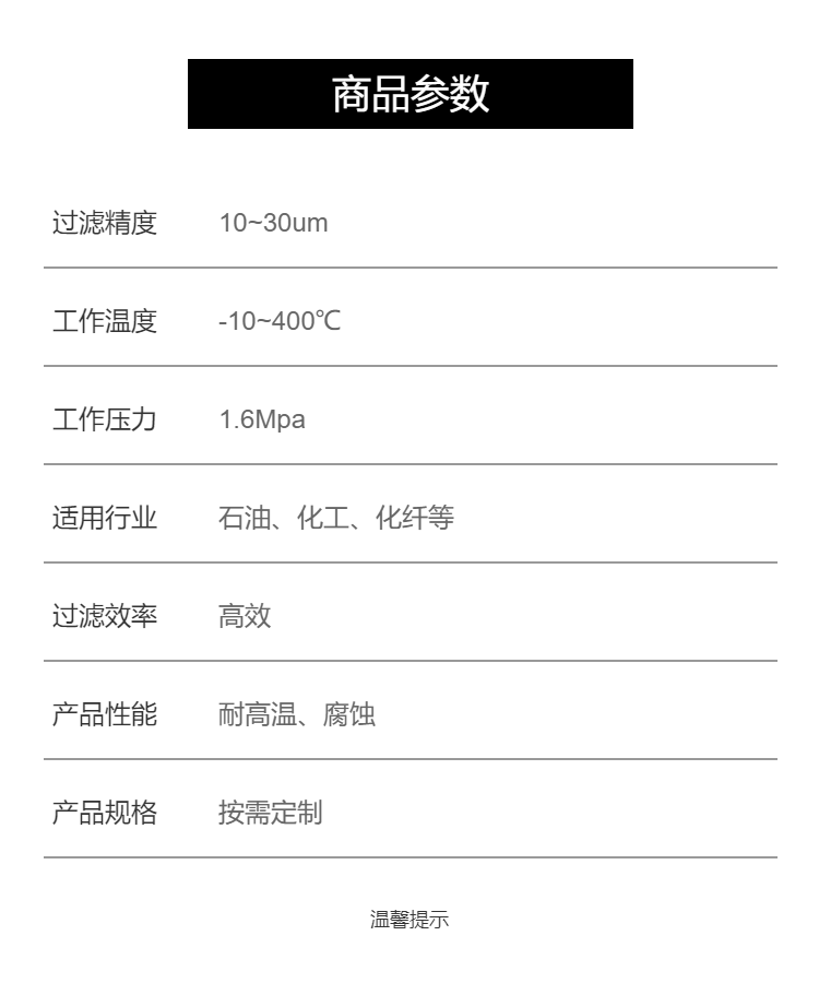 过滤精度 | 10-30μm | ||
