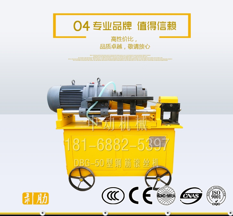 中动DBG-50型钢筋剥肋滚丝机 套丝机主要用于建筑工程带肋钢筋滚轧直螺纹丝头加工,是实现钢筋连接的关键设备,可加工φ12—φ50mm的HRB335、HRB400、HRB500及HRB600级带肋钢筋。