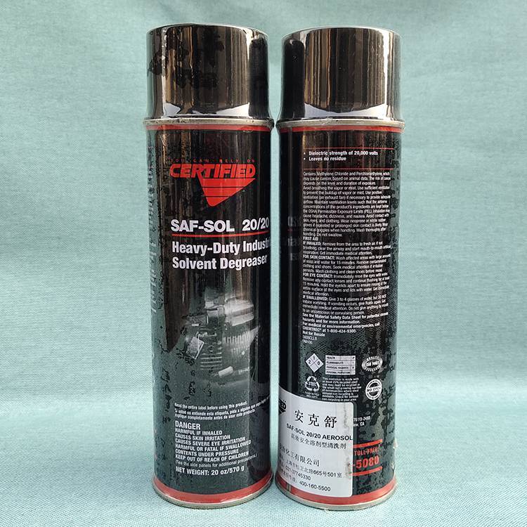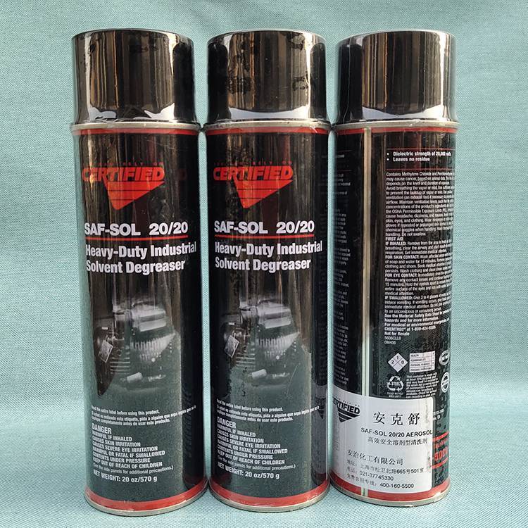 安克舒SAF-SOL高效安全型电气设备清洗剂。介电强度高达25,000V,可高效清除油脂、污垢、潮气等杂质,完全挥发。快速渗透,去除难以触及部件的油脂、油泥及污垢。无腐蚀性,不会损害大多数金属、轻合金或镀金饰面以及大多数塑料或涂料,的清洁能力,对重油污、油脂、原油、渣油、沥清有的去除效果,清洗后快速挥发,可替代易燃、有毒的溶剂清洗产品。