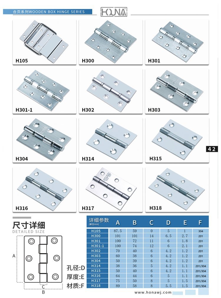 HOUNA/华纳? 合页铰链厂家 航空箱合页 窗扇合页 自制合页铰链厂家 五金排铰合页 合页磨具 不锈钢合页系列