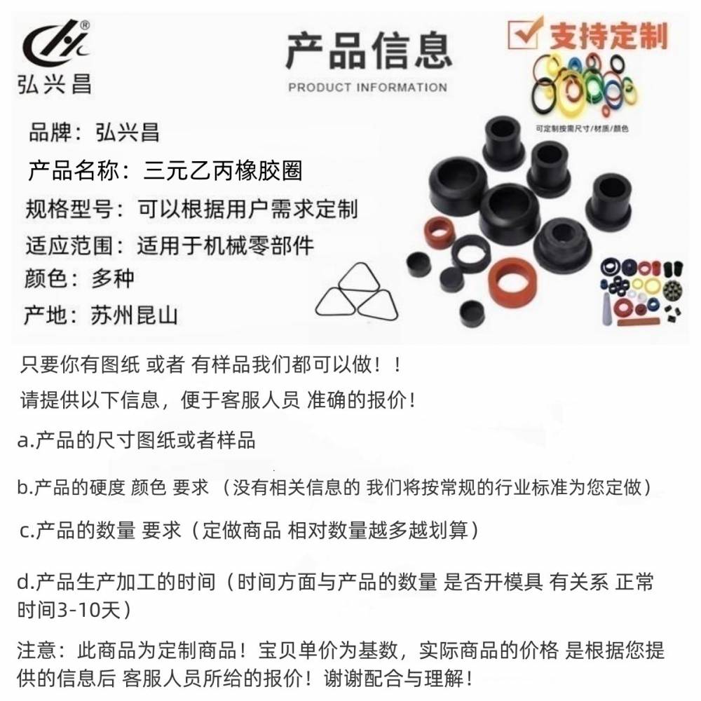 定制优质三元乙丙橡胶圈弘兴昌来图来样开模加工非标异形密封圈