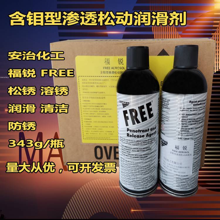 1.强渗透性:数秒内即可松动螺母、螺栓等联接件。2.润滑性:含可溶性钼,提供润滑保护。3.不含氯氟烃化物,不破坏大气臭氧层。4.安全性:对各种金属材料、橡胶、塑料、木制品均无害。净容量:343g