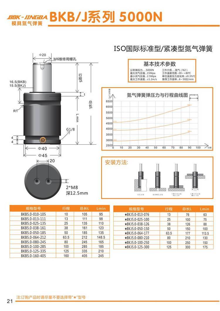 BKB-5000N-氮气弹簧 ISO标准型 紧凑型氮气弹簧 模具氮气弹簧生产厂家