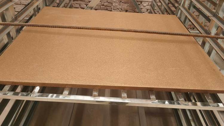 4、采用独特双面加压生产工艺,每块蛭石板上下压力一致,强度均匀;