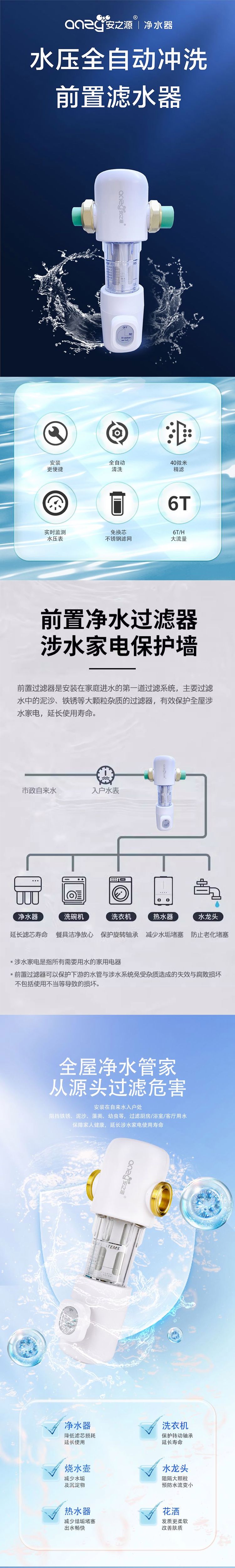 安之源(anzy)中央全屋自来水铜前置过滤不锈钢网大流量通量管道滤水器SC-Q2B款