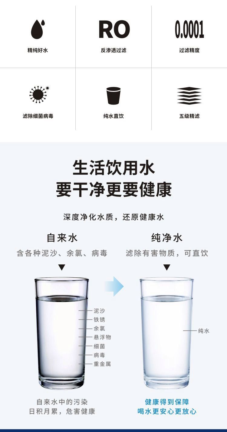 安之源(anzy)智能冲洗100G长效滤芯五级净化家庭厨房RO纯水机自来水出水直饮净水器智能型