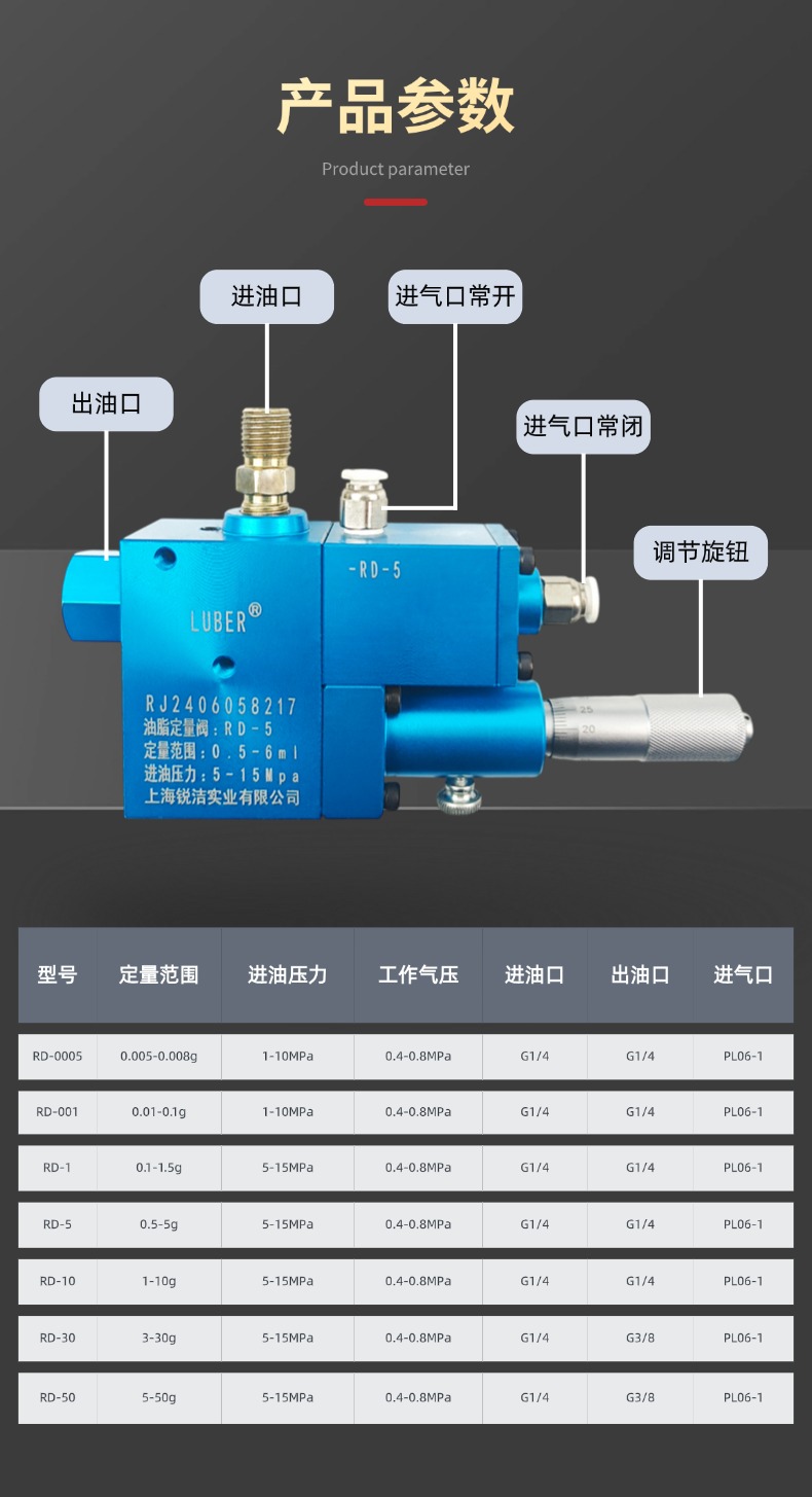 锐洁油脂黄油定量阀注油控制阀高精度计油阀精密润滑脂注油阀点胶
