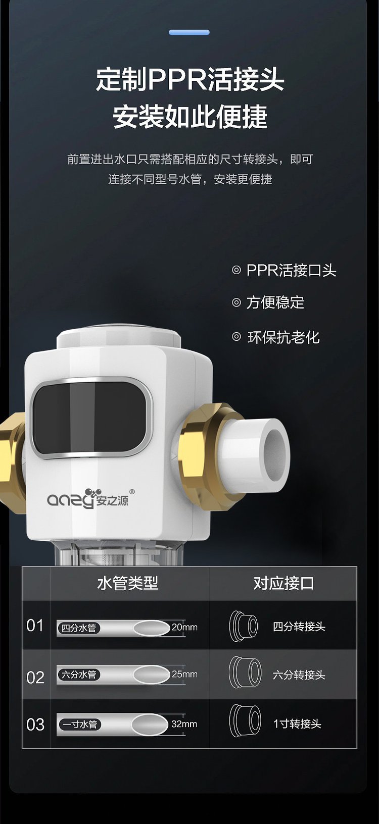 安之源(anzy)全屋自来水自动巡航刮洗功能不锈钢网大流量管道滤水铜前置过滤器SC-Q2