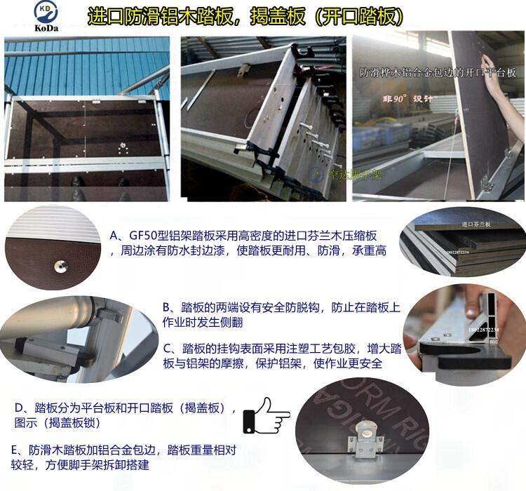 铝合金脚手架已逐渐被国内行业广泛认可,早已在许多建筑工地和室内工程大量应用,发展迅速。这种框架式脚手架,由于采用铝合金材质,重量比钢管脚手架更轻,没有零散配件,搭拆快速,不需要锤子、扳手等工具,有效提高工作效率,节省时间、人力,使用时也更安全,更可靠,使用成本更低。
