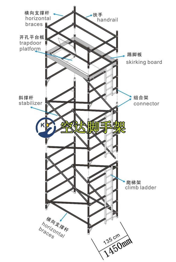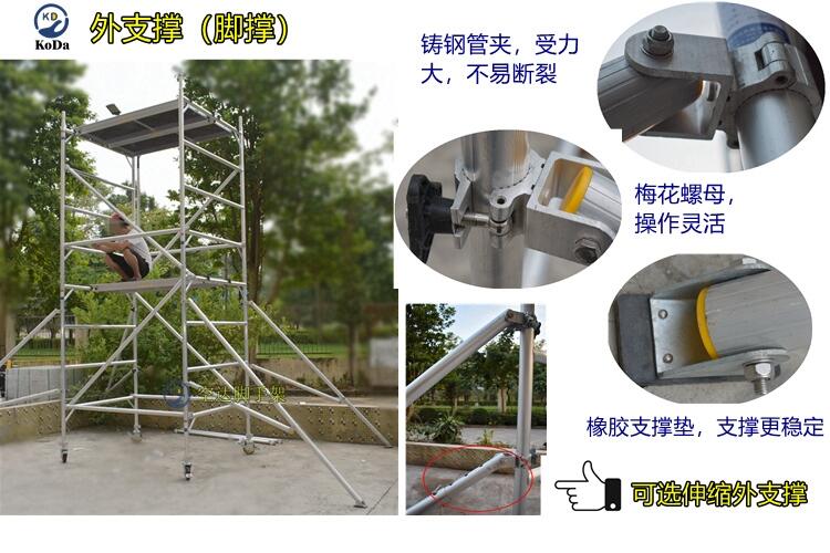 而有时需要搭建超过10米的铝合金移动式脚手架,需在塔架侧面增加特定高度的副架,以保障脚手架的安全稳定性和承载能力,这时按高度增加的副架,则要按照租赁单价计算,加入租赁价格中。