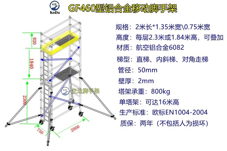 其次铝合金工程脚手架在建筑行业的作用和安全,铝合金的脚手架不仅能满足大量施工现场的工作需求同时还保证了建筑工程的质量,由于铝合金工程脚手架带有脚轮,可以移动,从而大大减少了工人门搬运脚手架的时间和力气.
