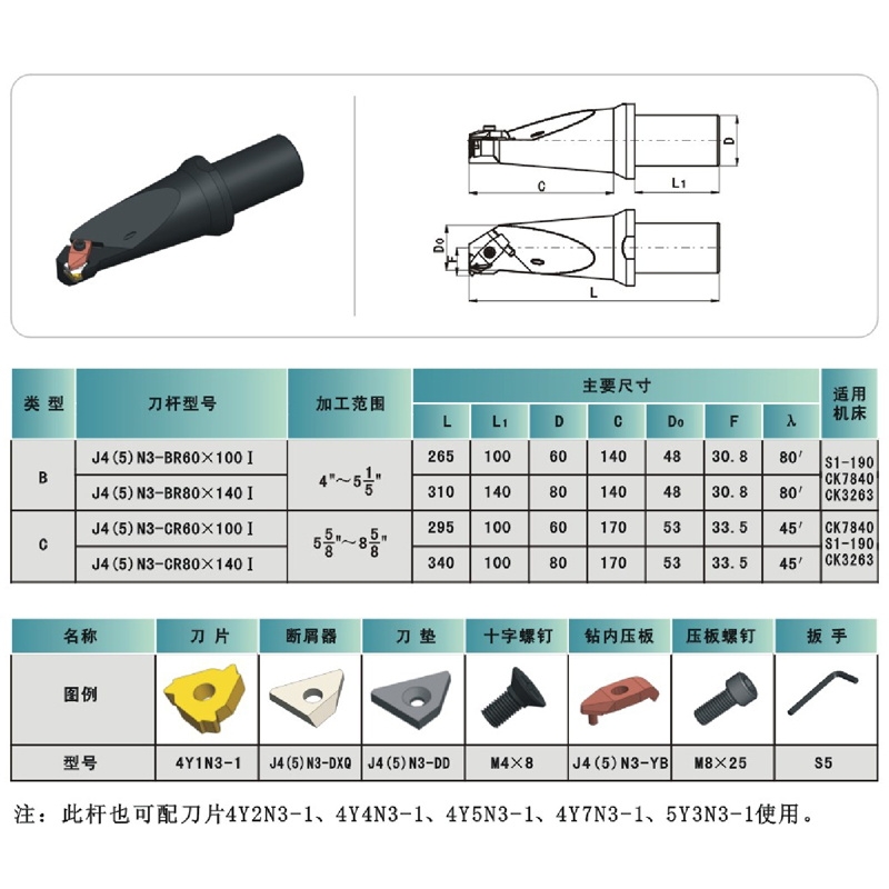 石油管螺纹刀具钻杆Ⅰ型内螺纹刀片用圆柄刀杆H4(5)N3-CR80×140Ⅰ