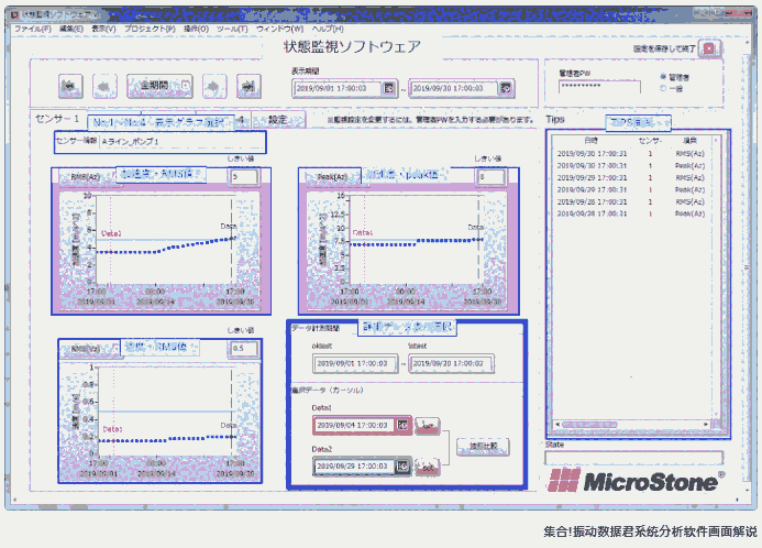 在分析软件中导入数据后,自动转换为位移数据并显示。如果使用频率过滤器和各种判定功能,数据的判断变得加。