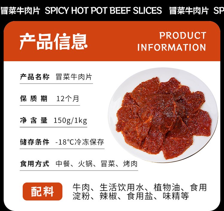 • 规格:【小米龙】冒菜麻辣牛肉片(麻辣味)1kg