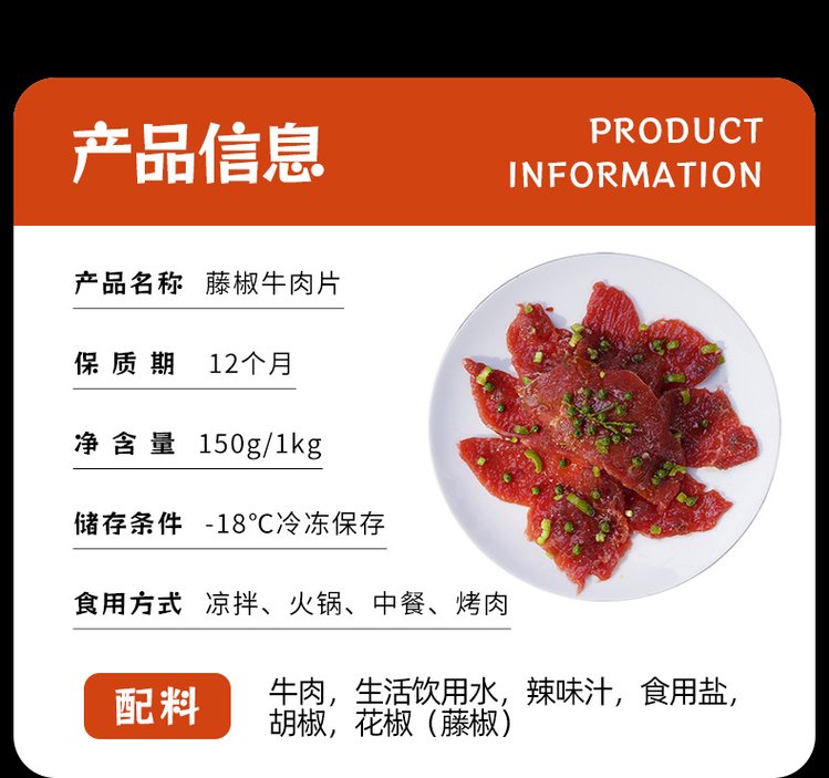 巴家蜀味生鲜藤椒牛肉片原切烤肉火锅串串冻货半成品食材冷冻牛肉