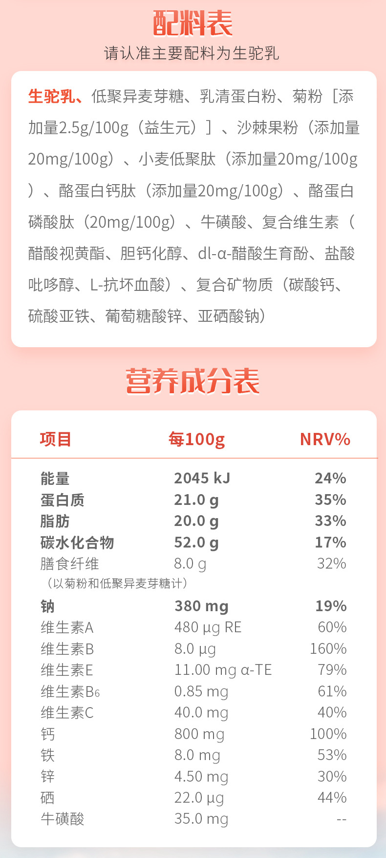 产品名称 | 沙棘多肽驼乳粉 | ||