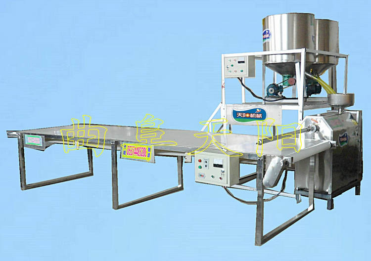 6FT-140BZ,由双搅拌机器,搅拌器工作台、粉条熟化成型机,皮带输送接条机及动力组成,生产效率:150-180公斤/小时,加热器功率12KW,主电机功率7.5KW,和浆机电机功率2.2+2.2KW,输送机1.1KW(调速),组装后尺寸: 4600*2200*2000mm,价格28500元/套,不含运费)。备注:1、购机免费提供技术。2、机器价格不含运输费用。3、机器质保两年。天阳吴奇WX:tyxsk6168