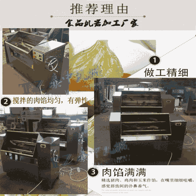 双轴拌馅机 搅拌机用于香肠、油饭、肉类、米糕、调味料等,使不同比例主辅料混合均匀。整机采用食品级不锈钢制造,桨叶与桶身间隙小,仿人手原理进行搅拌混合,不伤材料及不留死角,易于清洁。