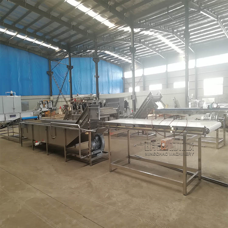 蔬菜清洗结束人力物力。 由上面的生产流程中的个单机组成的流水线而完成的酱菜净菜加工流水线,满足市场对净菜的需求
